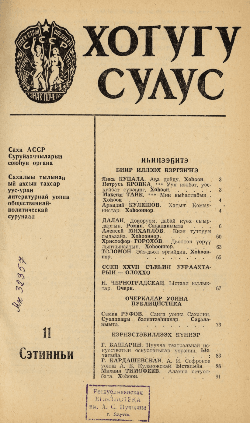 - Периодические издания Якутии (конец XIX – XXI вв.)ЖурналыЧолбон - Хотугу сулусХотугу сулус1986