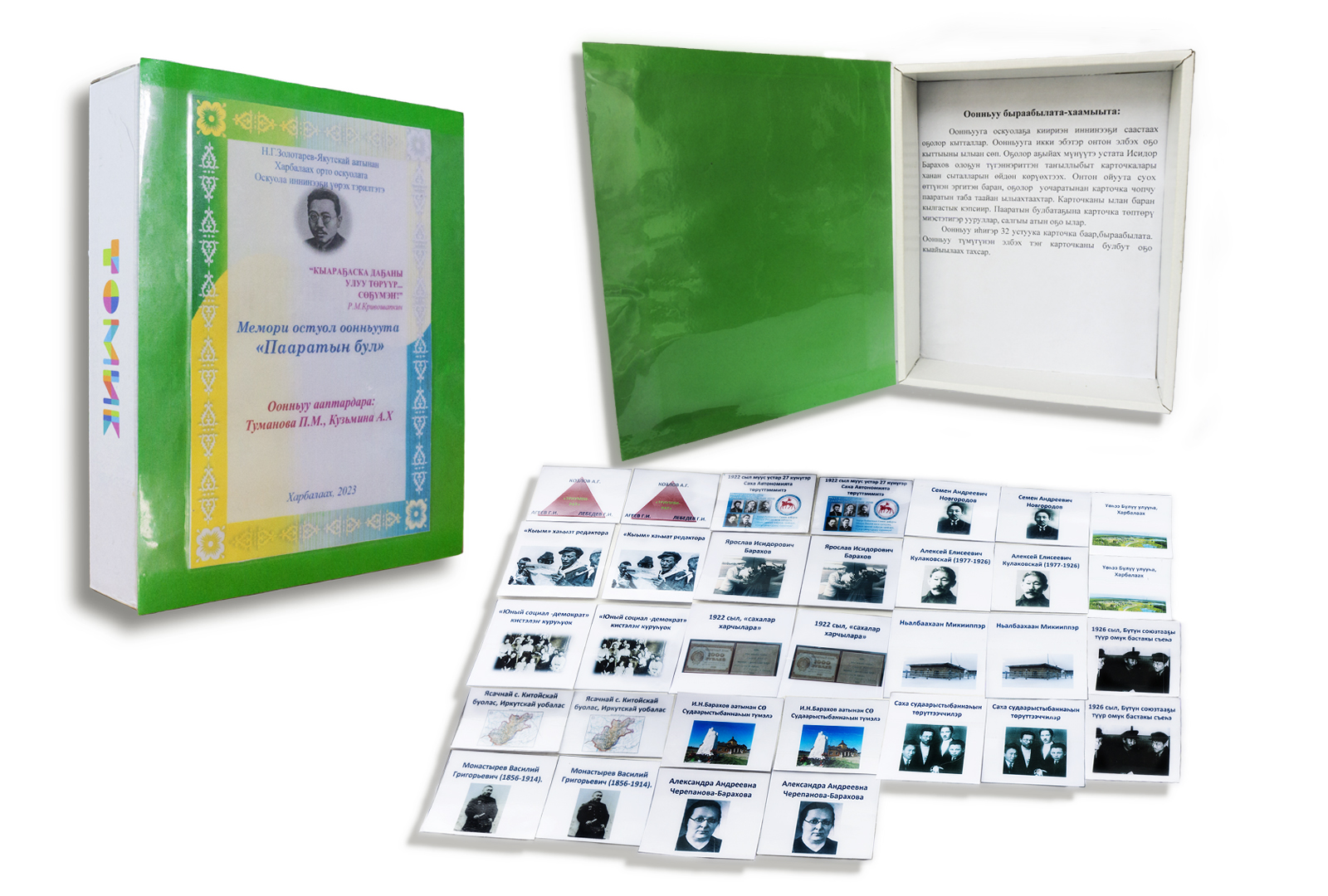 Өбүгэлэрбит оонньуулара. Хаамыска. Хабылык. Тырыыҥка: остуол оонньуулара Собери и назови: авторская дидактическая игра Однажды в Оймяконье: обучающая игротека Дьикти матахачаан: музыкальнай оонньуу Күөлгэ илим үтээһин: оҕолорго аналлаах оонньуу